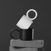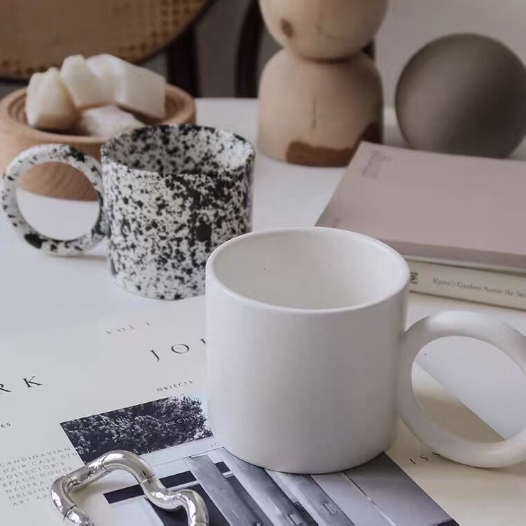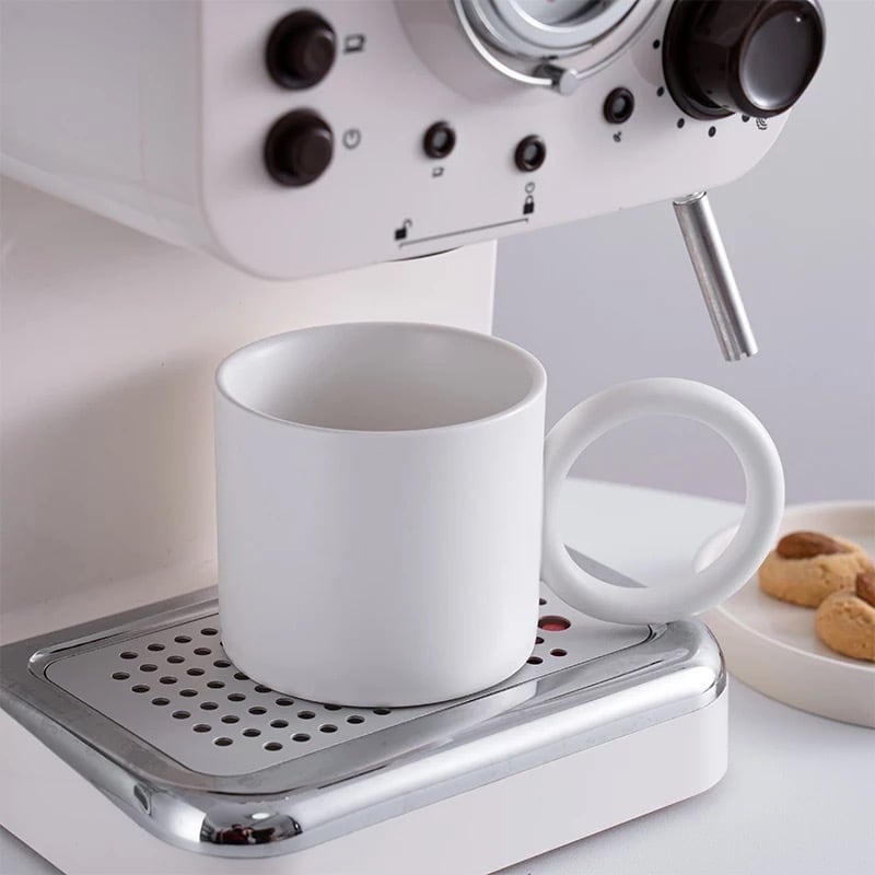 まあるい持ち手が特徴的なマグカップ。